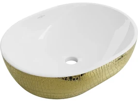 Umywalka nablatowa owalna z konglomeratu biała błyszcząca bez otworu na baterię 60 x 35 cm RONA white Glow