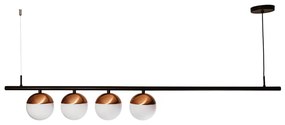 Pendente Snooker C/ 4 Globos Assimetricos 140Cm 4L E27 Mini Bulbo / Me... (PT / DR-M - Preto Text + Dourado Metálico, CLEAR)