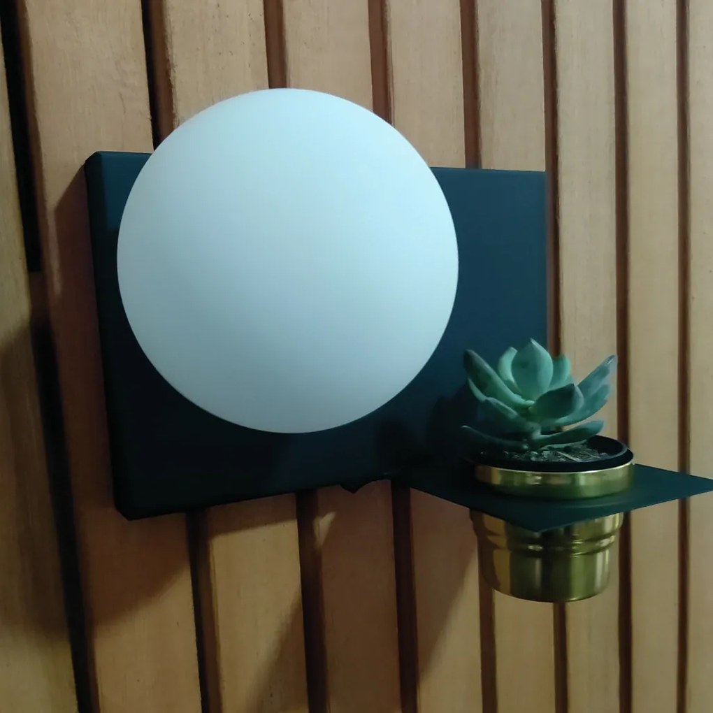 Arandela Nature Horizontal Com Porta Mini Vaso 12X25Cm Globo Ø10Cm 01X... (PRETO)