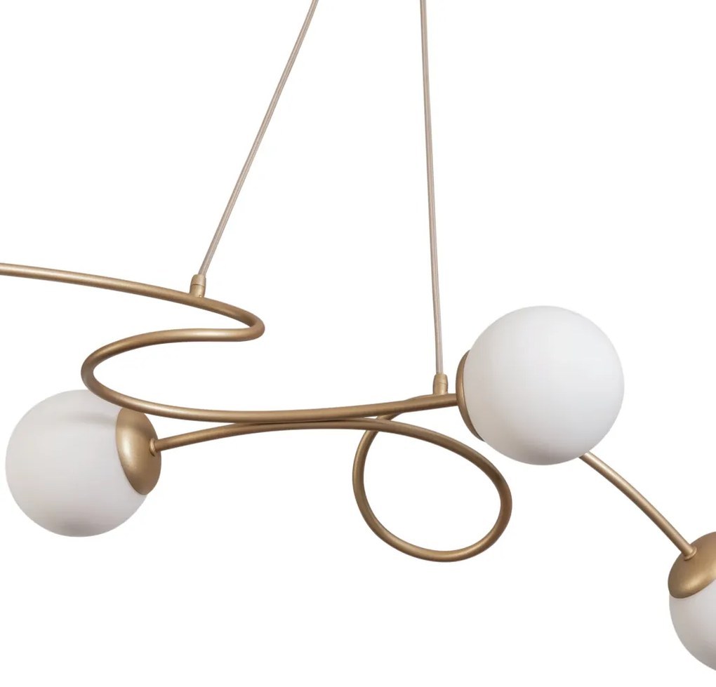 Pendente Tie 86,7X42X18,3Cm 4Xg9 Globo Ø12Cm - Usina 25100/90 (BT / DR-PV - Branco Texturizado / Dourado Brilho Polido Verniz, AMBAR)