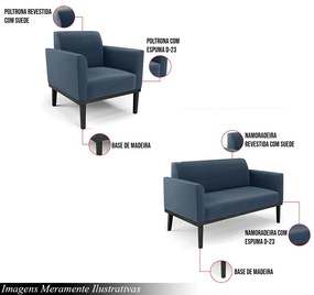 Seja bem-vindo ao conforto e à elegância incomparáveis desta poltrona exclusiva. Com seus pés fixos em madeira na cor preta, esta peça não apenas adiciona um toque de sofisticação a qualquer ambiente, mas também oferece durabilidade e resistência excepcionais. A espuma D-23, conhecida por seu suporte firme e confortável, garante que cada momento passado nesta poltrona seja uma experiência de relaxamento incomparável. Sua construção cuidadosamente elaborada e seu design moderno fazem dela uma adição perfeita para qualquer sala de estar, escritório ou área de leitura. Seja para receber convidados com estilo ou para desfrutar de momentos tranquilos, esta poltrona é uma escolha que combina funcionalidade, conforto e beleza. Além disso, sua versatilidade permite que ela se adapte facilmente a diferentes estilos de decoração, tornando-a uma peça atemporal que pode evoluir com o seu espaço ao longo do tempo. Combinando um visual elegante com um conforto excepcional, esta poltrona é mais do que um móvel, é um convite para relaxar e desfrutar de momentos especiais em grande estilo. Dimensões do Produto: Poltrona: Largura: 64cm Altura: 81cm Profundidade: 64cm Largura do Assento: 47cm Altura do Assento ao Chão: 45cm Largura do Braço: 9cm Altura do Encosto: 36cm Namoradeira: Largura: 114cm Altura: 81cm Profundidade: 64cm Largura do Assento: 96cm Altura do Assento ao Chão: 45cm Largura do Braço: 9cm Altura do Encosto: 36cm Características dos Produtos: Material da Estrutura: Madeira de Eucalipto Reflorestamento Assento: Espuma D-23 Encosto: Espuma D-23 Material dos Pés: Base Fixa em Madeira Revestimento: Suede Peso Suportado: 120kg Conteúdo da Embalagem: 2 Poltronas e 1 Namoradeira Necessita de Montagem: Somente dos pés Instruções/Cuidado: Evitar exposição ao sol, para que o produto não sofra alterações na cor do tecido. Não limpar com escovas ou produtos abrasivos. Observações Importantes: - As imagens são meramente ilustrativas e não acompanham objetos de decoração e eletros - Pode haver alguma diferença de tonalidade entre a imagem e o produto, por conta do tratamento de imagens e a calibração de cores da sua tela. - Todos os nossos produtos são enviados devidamente embalados e com total segurança - Confira as dimensões do produto no momento da compra e certifique-se de que passará normalmente por elevadores, portas, escadas e/ou corredores, evitando assim futuros desagrados ou imprevistos com a entrega do produto.