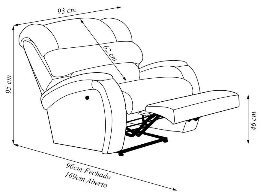 Que tal criar seu próprio home cinema? Aqui, vamos mostrar como você pode montar o seu! Com o local adequado, alguns itens decorativos e uma poltrona ideal, você garantirá um espaço confortável e imersivo. O primeiro passo é investir em equipamentos de alta qualidade! Olha só que lindeza a nossa Poltrona do Papai Reclinável Napoli. Ela foi projetada para proporcionar máximo conforto e funcionalidade, esta poltrona é a escolha ideal para quem busca relaxamento, estilo e uma experiência de cinema privada. A facilidade de ajuste com o botão elétrico com LED permite que você encontre a posição perfeita com o toque suave de um botão touch, pensado para proporcionar uma experiência imersiva sem igual. Além disso, possui USB trazendo praticidade na hora de carregar seu celular sem sair do seu conforto. Ela conta com capacidade para suportar até 110 kg, oferecendo segurança e estabilidade ao consumidor. O revestimento em Veludo oferece um toque de sofisticação e conforto, enquanto a estrutura em Composta por Madeira Maciça de Eucalipto garante resistência e durabilidade. O encosto foi preenchido com fibra siliconada. O assento foi preenchido com molas e espuma D-28, respectivamente, para um conforto adicional. O assento e o apoio de Pés Retrátil proporcionam um apoio perfeito para suas pernas, aumentando o conforto. Já os pés fixos foram feitos em aço revestido com plástico, adicionando um toque de elegância ao produto. Com um design moderno e prático, esta poltrona se tornará o destaque da sua sala de estar. Afinal, sua casa merece a Poltrona do Papai Reclinável Napoli Power Elétrica USB . Adquira a sua agora mesmo e transforme sua sala de estar em um verdadeiro cinema! Dimensões do Produto: Altura Total: 95 cm Largura Total: 93 cm Profundidade Total: 96 cm Altura do Encosto: 62 cm Altura do chão ao Assento: 46 cm Profundidade Total Aberta: 169 cm Peso: 45 kg Especificações do Produto: Estrutura: Madeira Maciça de Eucalipto Tecido: Veludo Material da Espuma: Com Molas e Espuma D-28 Tipo de Encosto: Reclinável com Enchimento em Fibra de Silicone Tipo de Assento: Fixo Peso Suportado: Até 110 Kg Tipo de Base: Fixo USB: Sim Material dos Pés: Aço Revestido com Plástico Diferenciais: Apoio de pés retrátil, botão com LED para acionamento Mecanismo: Botão com LED Bi-volt Quantidade de Lugares: 1 Lugar Manual de Montagem: Não Sistema de Montagem: Necessário somente encaixe do Encosto Garantia: 90 dias contra defeito de fabricação Instruções de Limpeza: Utilizar um pano limpo e levemente úmido