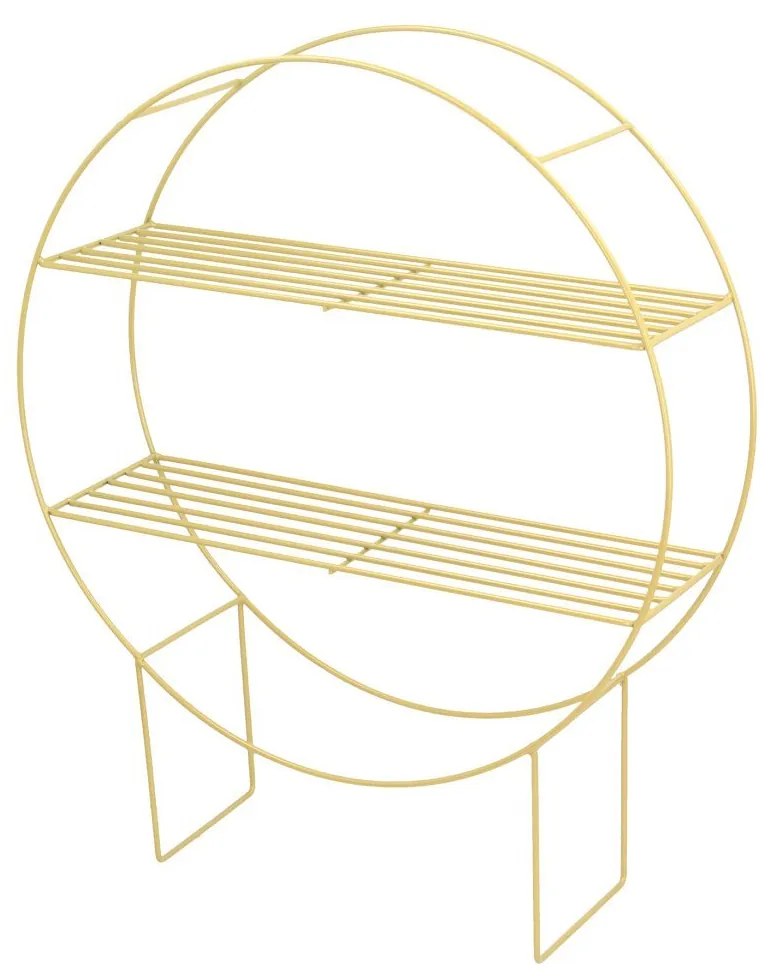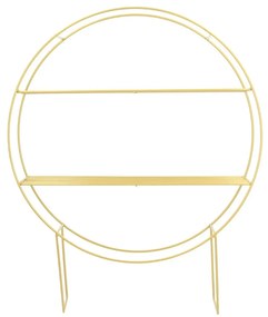 Oryginalna półka - stojak wykonana z metalu. Wyróżnia się lekką, minimalistyczną formą i eleganckim, złotym kolorem. Wspaniale zaprezentuje się jako stylowy element wystroju w nowoczesnym wnętrzu i stworzy dodatkową przestrzeń pod książki, dekoracje czy kosmetyki. Wymiary: szer. 49,5cm, gł. 15cm, wys. 60,5cm. Materiał: metal. Kolor: złoty. Waga: 1,6kg.