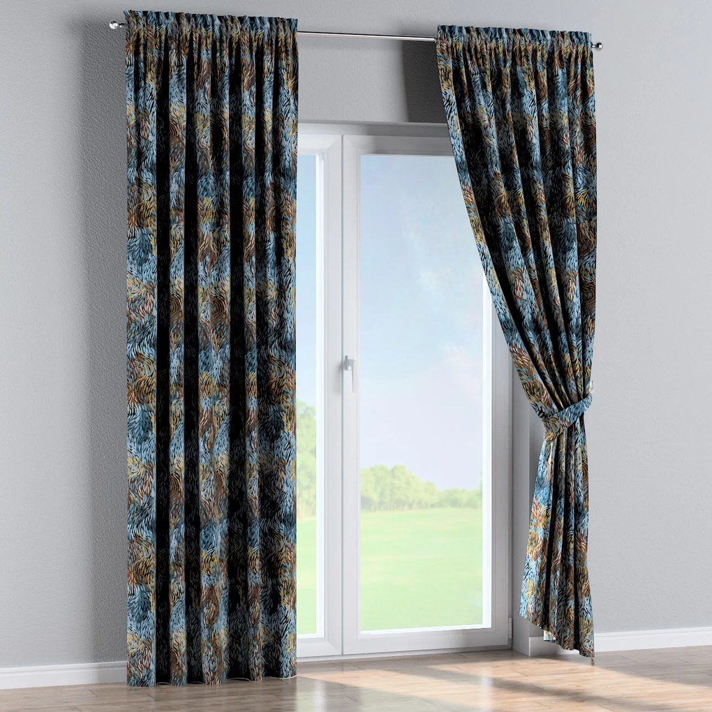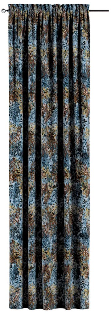 Zasłona na wymiar z wszytą taśmą, która tworzy kanał o szerokości 6,5cm z dekoracyjną grzywką / falbaną do zawieszania na karniszu rurowym. Montaż: bezpośrednio na rurce karnisza wykorzystując kanał lub przy użyciu haczyków/żabek wykorzystując doszytą taśmę marszczącą. Podana długość zasłony nie obejmuje wysokości grzywki 5cm. Szerokość zasłony dotyczy zasłony przed zmarszczeniem. Tkaniny zasłonowe w ofercie są dostępne w różnych szerokościach (szerokości do 150 cm i powyżej 280 cm). Jeśli zasłona jest szyta z tkaniny o szerokości do 150 cm, to jest ona zszywana z dwóch kawałków (szerokość zasłony 195cm: 130+65cm, 260cm: 130+130cm, 325cm: 130cm+130cm+65cm). Mimo tego, uszyte tak zasłony wyglądają bardzo estetycznie. Dół zasłony szytej na wymiar jest wykończony szerokim podwinięciem oraz obciążnikami w rogach zasłony, które zapewniają ładne układanie się tkaniny (wyjątek stanowią zasłony z kolekcji Velvet, które nie posiadają obciążników). Wymiary produktów wykonanych z tkanin objęte są tolerancją w granicach +/- 2 cm na długości i szerokości. Margines błędu w wymiarach jest wynikiem właściwości materiału.