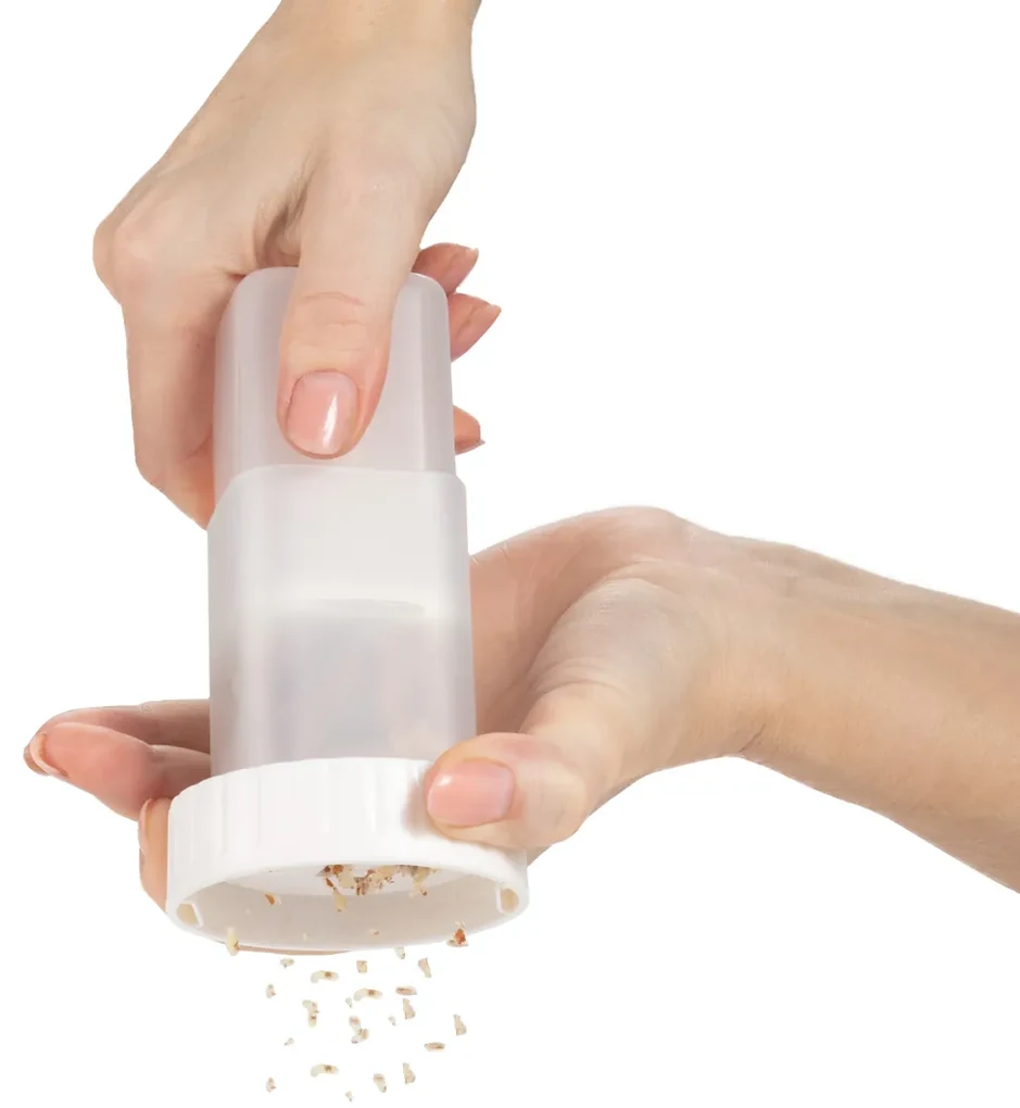 Tarka do czekolady i orzechów DELÍCIA do łatwego dekorowania wypieków startą czekoladą i orzechami. Łatwo i szybko zetrzesz czekoladę lub orzechy, a jednocześnie wygodnie i równomiernie udekorujesz nimi potrawy podczas tarcia. Możesz wybrać, czy chcesz zrobić małe wiórki czekoladowe z połamanych kawałków zwykłej czekolady stołowej, czy duże wiórki czekoladowe z wcześniej przygotowanych tabliczek. Do przygotowania dużych wiórków czekoladowych tarka DELÍCIA jest wyposażona w formy do formowania tabliczek czekolady z roztopionej czekolady. I to właśnie z takich tabliczek i tylko z nich można wygodnie zetrzeć duże wiórki czekoladowe. Formy do formowania tabliczek czekolady są przechowywane wewnątrz tarki. Wykonana z wytrzymałego plastiku, można myć w zmywarce. Przedłużona 3-letnia gwarancja.