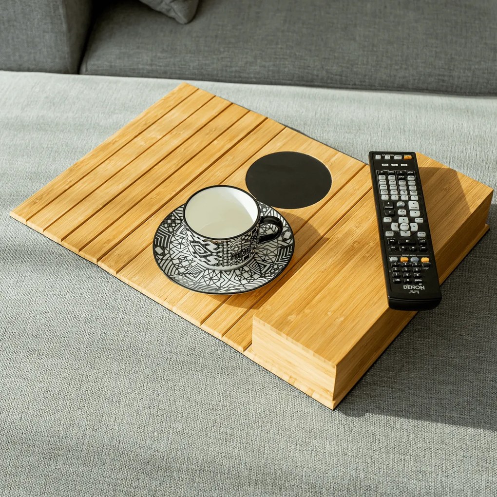 Jeśli ciągle szukasz czegoś do odłożenia szklanki lub spodka podczas relaksu na ukochanej kanapie, a do tego Twój stolik kawowy jest daleko i nie możesz do niego dosięgnąć, ta oto podkładka stanowi doskonałe rozwiązanie! Łatwa obsługa to dla Twojego niezakłóconego wypoczynku. Podkładka jest wykonana z lakierowanego bambusa, jest wystarczająco mocna i jednocześnie elastyczna.
