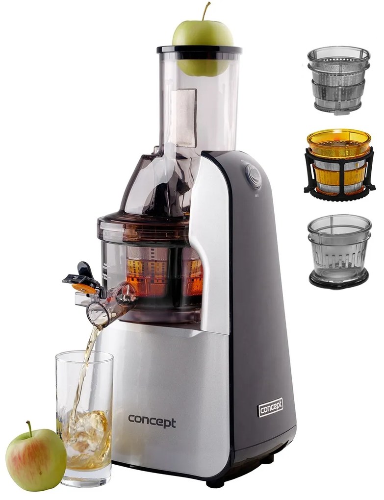 Sokowirówka ślimakowa LO7065 3 w 1 umożliwia przygotowywanie świeżych soków, koktajli i deserów na zimno. Duży otwór wlotowy może pomieścić również całe owoce. Dwuetapowy proces wyciskania pozwala uzyskać maksymalną ilość soku przy minimalnej ilości odpadów. Chcesz mieć zdrowy, świeży sok na swoim stole każdego dnia? W takim razie nowa wyciskarka do owoców i warzyw firmy Concept jest właśnie dla Ciebie. Dzięki dużemu otworowi wlotowemu o średnicy 75 mm zaoszczędzisz mnóstwo czasu. Wyciskarka do owoców i warzyw LO7065 może pochwalić się oznaczeniem SPECJALISTA OD PORZECZEK- przetwarza 1,5 kg tego pełnego witamin surowca w zaledwie 2 minuty. Dzięki dwuetapowemu procesowi wyciskania, owoce lub warzywa są najpierw miażdżone, a następnie wyciskane. Rezultatem jest maksymalna ilość świeżego soku i minimalna ilość odpadów. W rzeczywistości sokowirówka LO7065 kryje w sobie trzech wdzięcznych pomocników. Wystarczy zdecydować, w jakiej formie chcemy dostarczyć organizmowi niezbędnej dawki witamin i odpowiednio dobrać sitko. Sprytny system ANTI DRIP umożliwia wymianę pojemnika na sok bez brudzenia blatu kuchennego lub konieczności przerywania wyciskania soku. Dzięki łatwemu demontażowi i dostosowanej szczotce, będziesz również cieszyć się szybkim czyszczeniem po wyciśnięciu soku. Opis podstawowy: 75 mm duży otwór do wkładania pojemniki wolne od BPA bardzo łatwy w użyciu łatwe czyszczenie dzięki pełnemu demontażowi i dostosowanej szczotce zatyczka zapobiegająca kapaniu pojemność pojemnika na sok: 1 l pojemność pojemnika zbiorczego: 1 l system bezpieczeństwa popychacz nóżki antypoślizgowe prędkość: maks. 60 obr. napięcie: 220 - 240 VAkcesoria: szczoteczka do czyszczenia sitka pojemnik na sok pojemnik na odpady sitko do smoothie sitko do zimnych deserów popychacz
