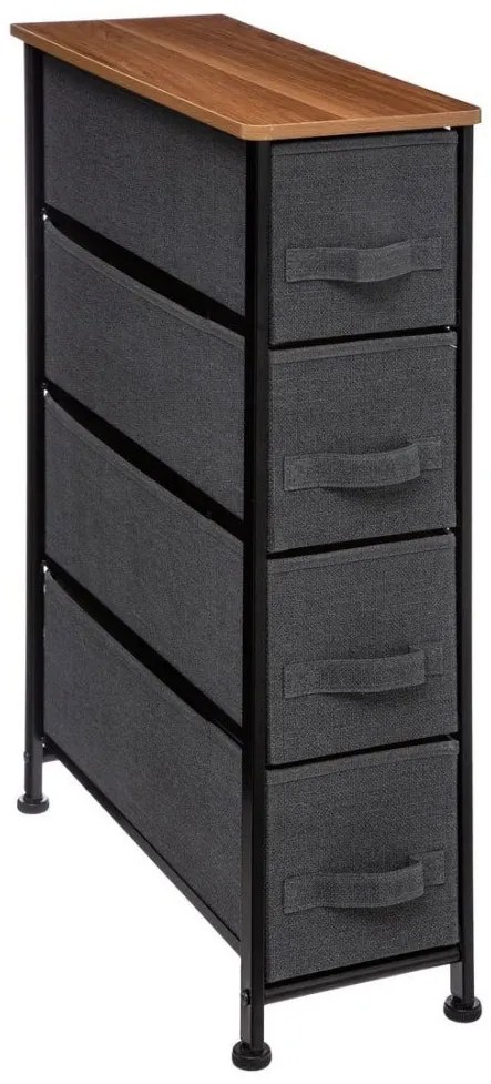 Regał łazienkowy z 4 szufladami od 5five Simple Smart - Elegancja i funkcjonalność w Twojej łazience Stylowy i praktyczny design : Antracytowy regał z solidnym, metalowym stelażem, idealny do przechowywania kosmetyków i drobiazgów łazienkowych. Wymiary dopasowane do potrzeb : Długość 48 cm, szerokość 20 cm, wysokość 75 cm - perfekcyjne wymiary, które pozwalają na wygodne umieszczenie w łazience, nawet w bardzo wąskiej wnęce. Cztery tekstylne szuflady : Duża ilość miejsca do przechowywania, z możliwością schowania przedmiotów poza zasięgiem wzroku. Półka na widoczne przedmioty : Idealna na kosmetyki i elementy dekoracyjne, dodająca funkcjonalności i uroku. Nowoczesny akcent we wnętrzu : Połączenie szarości i naturalnych akcentów tworzy trendowy i nowoczesny wygląd, pasujący do każdej łazienki.