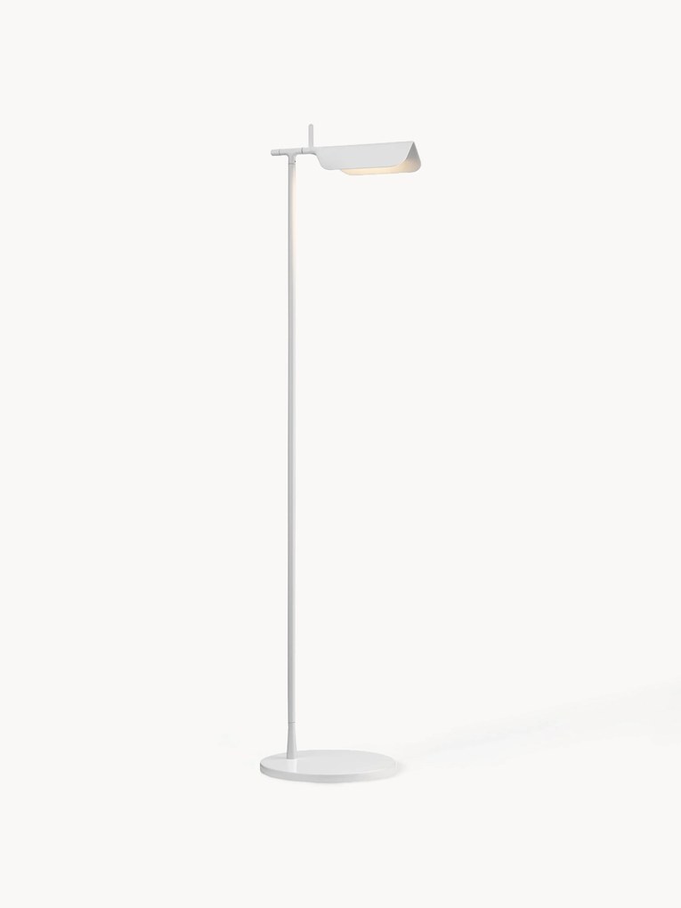 Ta nowa wersja lampy podłogowej TAB posiada klosz regulowany pod kątem 90 stopni, który emituje bezpośrednie światło. Powołany do życia przez duet projektantów Edwarda Barbera i Jaya Osgerby'ego, pierwotnie zaprojektowany w 2011 roku, TAB jest hołdem dla ducha innowacji. Oferta obejmuje żarówkę i jest ona zainstalowana w produkcie Świeci ciepłym odcieniem bieli i ma niską moc Lampa posiada przełącznik na kablu, za pomocą którego można ją włączać i wyłączać oraz przyciemniać do 50% Wyprodukowano w Szwajcarii