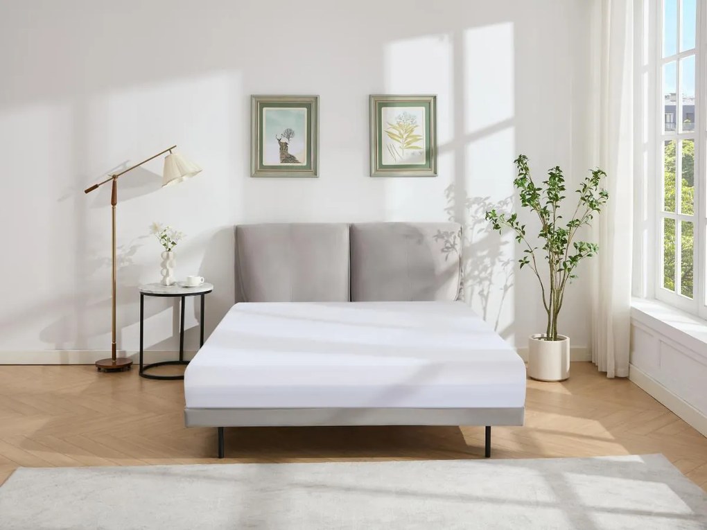 Łóżko 140 x 190 cm - Konstrukcja: Sklejka - Pokrycie: Welur - Kolor: Szary - szer. 161 x dł. 213 x wys. 100 cm - Styl: Nowoczesny - Postaw na niezrównany komfort i elegancję z łóżkiem IBEDIA!
