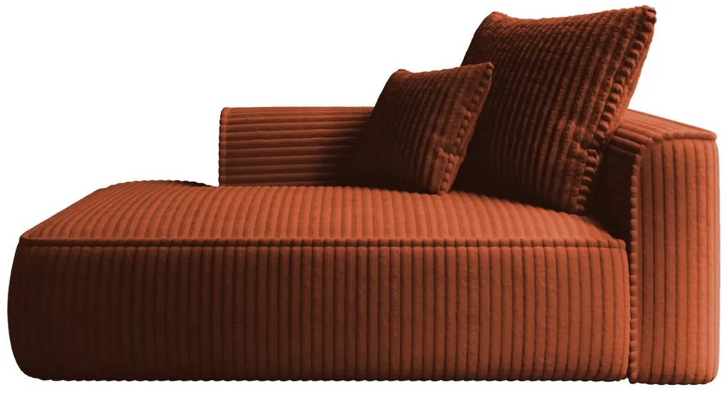 Szezlong lewostronny z terakotowego szeroko prążkowanego sztruksu - PINETA