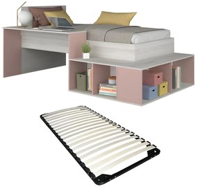 Łóżko piętrowe 90 x 200 cm ze skrzynią i i biurkiem - Naturalny i różowy + Stelaż - RIGALI
