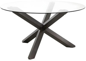Lite drewno bukowe. Blat ze szkła hartowanego o grubości 10 mm Stół okrągły na trójnogu. Kolor wenge. Wymiary: średnica 140 × wysokość 75,5 cm Dla 4 osób
