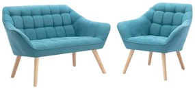 Wybierz 2-osobową kanapę i fotel w skandynawskim stylu z pikowanej tkaniny w kolorze niebieskim. To obecnie niezwykle modny styl. Wymiary: 127/82 × 73 × 77 cm (dł. × szer. × wys.). CASERTA