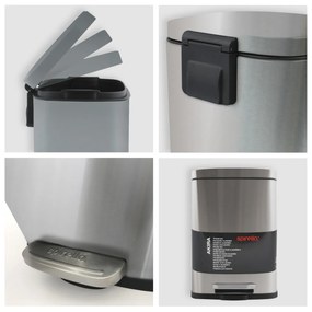 Kosz na śmieci z pedałem AKIRA kultowej marki Spirella, wykonany ze szczotkowanej stali nierdzewnej, ma pojemność 5 litrów i charakteryzuje się eleganckim wyglądem oraz praktycznymi funkcjami, które ułatwiają codzienne użytkowanie. Dzięki matowej powierzchni doskonale pasuje do nowoczesnych łazienek, kuchni i biur.Wykonany jest z wysokiej jakości stali, która gwarantuje długą żywotność i odporność na wilgoć. Mechanizm nożny pozwala na higieniczne otwieranie bez konieczności dotykania rękami, co przyczynia się do większej czystości i komfortu.Dzięki technologii Easy-Close pokrywa zamyka się cicho i płynnie, eliminując nieprzyjemne uderzenia. Specjalna powłoka zapobiega pozostawianiu odcisków palców, dzięki czemu kosz dłużej pozostaje czysty. Wyjmowany pojemnik wewnętrzny umożliwia łatwe opróżnianie i wygodną konserwację.Seria AKIRA oferuje szeroką gamę akcesoriów łazienkowych, dzięki którym można stworzyć stylowo dopasowany wystrój wnętrza.Główne zalety produktu: elegancka matowa powierzchnia pasująca do nowoczesnego wnętrza wysokiej jakości stalowa konstrukcja zapewniająca długą żywotność higieniczne otwieranie za pomocą pedału nożnego ciche i płynne zamykanie pokrywy dzięki technologii Easy-Close powłoka zapobiegająca pozostawianiu odcisków palców wyjmowany pojemnik wewnętrzny ułatwiający konserwacjęZawartość opakowania: 1x kosz na śmieci z pedałem Spirella AKIRA 5 l, szczotkowana stal nierdzewna