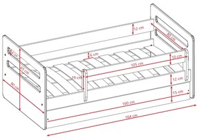 Łóżko dziecięce TOMI zielone bezpieczne Polskie łóżko TOMI pojedyncze Łóżko TOMI to mebel o rozmiarze 160x80 wykonany przez polskiego producenta, który oferuje ten model łóżka również w rozmiarze 140x80 oraz 180x80. Już na etapie projektowania zadbano, by mebel był bezpieczny w użytkowaniu, dlatego wszystkie krawędzie są zaokrąglone. Te dziecięce łózko skonstruowano z wysokiej jakości laminowanej płyty meblowej o grubości 18 mm. Fronty zaś zrobiono z trzykrotnie lakierowanej płyty MDF, gdzie zastosowano atestowane i ekologiczne farby. Zielone łóżko z białymi elementami będzie świetnie pasowało do dziecięcego pokoju. Prezentowane białe łóżko jest dwustronne, dzięki temu na etapie montażu możemy zdecydować, po której stronie znajdzie się ruchoma barierka oraz szuflada. Do montażu łóżka dołączone są śruby ściągające, które sprawiają, że jego maksymalne obciążenie wynosi 100 kg. Dzięki tak dużej wytrzymałości rodzic może bez problemu położyć się obok dziecka, zanim maluch zaśnie. Pojedyncze łóżko TOMI wyposażone jest w ruchomą barierkę, której długość wynosi 100 cm. Barierka jest w pełni mobilna, można ją bez problemu przesuwać, a nawet w razie potrzeby całkowicie ją ściągnąć. Łóżko z barierką jest szczególnie dobrym rozwiązaniem dla najmłodszych dzieci, ponieważ zapewni ona maluchowi bezpieczeństwo oraz uchroni przed wypadnięciem z łóżka podczas snu. Do łóżka dołączono stelaż z elastycznymi listwami. Opcją dodatkową do łóżka dziecięcego jest szuflada. Wybierając łóżko z szufladą będziemy mieć możliwość przechowywania pościeli oraz innych rzeczy dziecka. Szuflada jest dwudzielna i posiada kółka ułatwiające jej wysuwanie. Dziecięce łóżko TOMI sprzedawane jest bez materaca. Cechy produktu łóżko dostępne w 3 rozmiarach: 140x80, 160x80 i 180x80, produkt polski, konstrukcja z laminowanej płyty meblowej, fronty z lakierowanej płyty MDF, zastosowane lakiery i farby posiadają atesty oraz są ekologiczne, bezpieczne, zaokrąglone krawędzie, ruchoma barierka, szuflada na pościel w opcji za dopłatą, stelaż flex w zestawie, łóżko sprzedawane bez materaca, materac w opcji za dopłatą, maksymalne obciążenie - 100 kg, do samodzielnego montażu, w swojej ofercie posiadamy szeroki wybór mebli pozwalających na kompleksowe wyposażenie mieszkania Dostępne materace materac standardowy - to 8 cm materac wykonany z pianki poliuretanowej. Pokrowiec materaca wykonany jest z tkaniny oraz posiada wszyty zamek błyskawiczny umożliwiający bezproblemowe zdjęcie go i wypranie. materac kokosowo-piankowy - to dwustronny materac o wysokości 8 cm. Pokrowiec materaca posiada wszyty zamek błyskawiczny pozwalający na zdjęcie go i wypranie w pralce. Po jednej stronie materaca znajduje się warstwa pianki, a po drugiej wkład kokosowy, który sprawia, że materac jest nieco bardziej twardy. Warstwa kokosu pozwala na odpowiednią cyrkulację powietrza, która przeciwdziała przegrzewaniu się i poceniu dziecka podczas snu. materac piankowo-lateksowy - to dwustronny materac o wysokości 10 cm, w którym 7 cm stanowi warstwa pianki poliuretanowej, a 3 cm to warstwa lateksu. Lateks poprawia komfort snu oraz w sposób optymalny dopasowuje się do ciała dziecka zapewniając jednocześnie odpowiednią cyrkulację powietrza poprzez specjalne kanaliki. Pokrowiec materaca można bez problemu zdjąć i wyprać, gdyż posiada on wszyty zamek błyskawiczny. Wszystkie materace posiadają pozytywną opinię Instytutu Matki i Dziecka, Państwowego Zakładu Higieny oraz Centralnego Ośrodka Techniki Medycznej potwierdzającą właściwości antyalergiczne, antyodleżynowe i rehabilitacyjne wszystkich materacy.