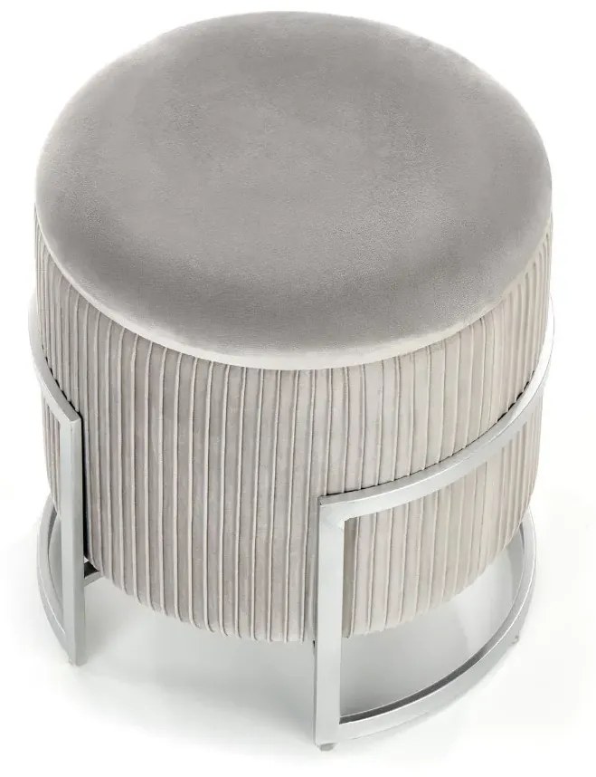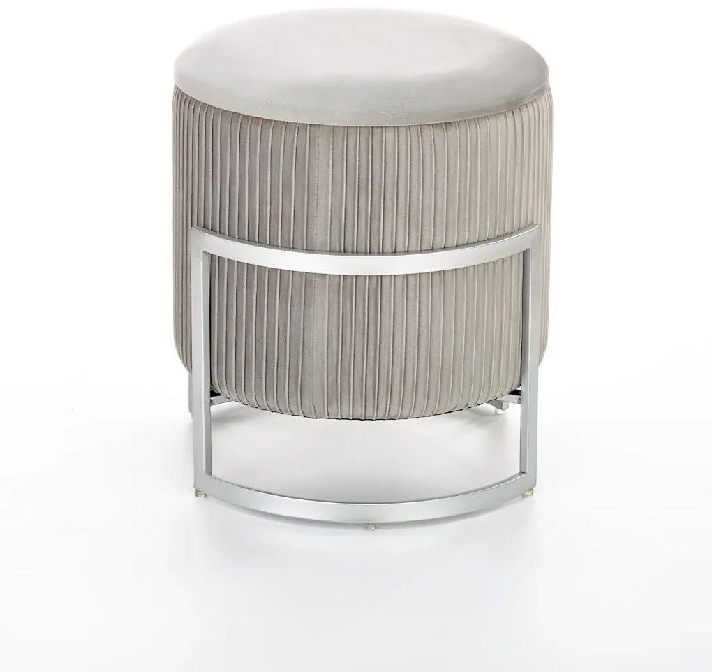 Pufa CRICKET VELVET jasnoszara w stylu glamour Tapicerowana aksamitem pufa CRICKET okrągła do siedzenia ze schowkiem Pufa CRICKET VELVET to okrągła pufa do siedzenia tapicerowana tkaniną aksamitną w modnym kolorze jasnoszarym stworzona została z myślą o eleganckich wnętrzach urządzonych w stylu glamour. Tkanina aksamitna połączona została z podstawą ze stali malowanej proszkowo w kolorze stalowym nadającej elegancji i wyjątkowego charakteru. Okrągła pufa CRICKET VELVET o średnicy 40 cm to pufa ze schowkiem, która stanowi doskonały mebel do salonu. Zapewnia miejsce do siedzenia, może posłużyć jako komfortowy podnóżek lub jako pufa do toaletki czy sypialni. Niewielkie rozmiary pufy sprawiają, że nie zajmuje ona wiele miejsca, co doskonale sprawdza się w małych mieszkaniach. Cechy produktu okrągła pufa ze schowkiem do salonu, tapicerowana tkaniną aksamitną, kolor - jasny szary, podstawa ze stali malowanej proszkowo w kolorze stalowym, bezproblemowy zwrot do 30 dni, w swojej ofercie posiadamy szeroki wybór mebli pozwalających na kompleksowe wyposażenie mieszkania.