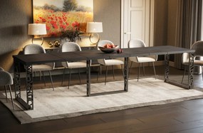 Stół rozkładany EWEREST MAX 130(250)x85 beton ciemny z trzema wkładkami I sklep meblowy MIRAT. 8-osobowy stół rozkładany EWEREST MAX z ażurowymi nogami Stół rozkładany EWEREST MAX to prawdziwy fenomen na rynku meblarskim, który łączy doskonałe wykonanie z atrakcyjną stylistyką. Ten polski produkt został stworzony z myślą o najwyższej jakości, korzystając z grubych 3,6-centymetrowych płyt meblowych. Aby zabezpieczyć materiał przed wilgocią i uszkodzeniami, krawędzie płyty zostały zaokrąglone i wykończone tworzywem ABS. Blat w kolorze ciemnego betonu o chropowatej powierzchni ma ciekawie wyglądający odcień. W celu zapewnienia wygody użytkowania, stół wyposażono w prowadnice synchroniczne, które umożliwiają łatwe rozkładanie blatu. Wystarczy pociągnąć go z jednej strony, aby druga automatycznie się rozsunęła. Stół w wersji złożonej pozwala nam podczas codziennego użytkowania zaoszczędzić miejsce, a w przypadku przyjęcia gości, rozłożyć go bez wysiłku. Po rozłożeniu stołu bez problemu zmieścimy przy nim około 8 osób. Podstawa stołu została wykonana z metalu, co zapewnia mu solidną i stabilną konstrukcję. Nogi stołu są malowane proszkowo, co chroni metal przed powstawaniem rdzy z powodu wilgoci. Ażurowy wzór na nogach stanowi interesujący element wizualny, który dodaje charakteru temu meblowi. Dodatkowo loftowy stół posiada dodatkową nogę na środku, która zwiększa stabilność, zwłaszcza po rozłożeniu stołu do maksymalnej długości. Stół rozkładany EWEREST MAX to nie tylko praktyczny mebel, ale również niezwykle atrakcyjny element wystroju wnętrz. Jego doskonałe wykończenie, solidna konstrukcja oraz możliwość regulacji rozmiaru sprawiają, że stanowi on nieodłączny element wielu nowoczesnych przestrzeni mieszkalnych. Cechy produktu produkt polski, blat wykonany z wysokiej jakości płyty meblowej, krawędzie płyty wykończone obrzeżami ABS, rozkładany blat z wkładkami przechowywanymi osobno, podstawa z metalu malowanego proszkowo na kolor czarny, nogi ażurowe, noga stabilizująca na środku stołu, do samodzielnego montażu, w swojej ofercie posiadamy szeroki wybór mebli pozwalających na kompleksowe wyposażenie mieszkania.