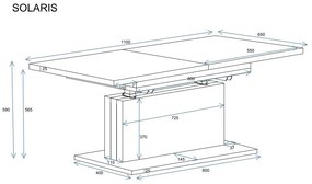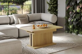Ława rozkładana SOLARIS 110(170)x65 dąb natura z funkcją podnoszenia I sklep meblowy MIRAT. Solidna podnoszona ława rozkładana SOLARIS do salonu Ława rozkładana podnoszona SOLARIS to niezwykle funkcjonalny i praktyczny mebel, idealny do użytku w pomieszczeniach o ograniczonej przestrzeni. Zaprojektowany z myślą o maksymalnym komforcie użytkowania, ta drewniana ława jest doskonałym rozwiązaniem dla mieszkań, gdzie tradycyjny stół z krzesłami nie mieści się. Podczas codziennego użytkowania ława pełnić będzie podwójną rolę, gdyż może być używana jako niski stolik kawowy. Będzie doskonałym miejscem do odłożenia laptopa, pilota telewizyjnego, filiżanki z ulubionym napojem i innych drobiazgów. Jednak w momencie, kiedy nadchodzi czas na wspólny rodzinny obiad lub spotkanie ze znajomymi, ławę można w pełni rozłożyć i podnieść za pomocą zastosowanego podnośnika pneumatycznego. W ten sposób szybko i sprawnie tworzymy praktyczny i estetyczny stół, który pozwoli nam ustawić przy nim krzesła, gwarantując wygodne miejsce do spożywania posiłków i długich rozmów. Jakość wykonania jest jednym z kluczowych aspektów tego prostokątnego stolika kawowego. Wyprodukowana w Polsce, wykonana została z solidnej 2,5 cm płyty meblowej w kolorze dąb natura. Krawędzie wykończone tworzywem ABS nie tylko dodają elegancji, ale również zapewniają dodatkową ochronę przed uszkodzeniami mechanicznymi i wilgocią. Do ławy dołączone są dwie praktyczne wkładki, które są wygodnie przechowywane pod blatem. Dzięki nim mamy możliwość zmiany długości blatu, gdy pojawia się większa liczba gości, a jednocześnie nie zajmują one dodatkowej przestrzeni w codziennym użytkowaniu. Warto również podkreślić, że ława do salonu została wyposażona w prowadnice synchroniczne, co umożliwia łatwe i szybkie rozsunięcie blatu. Wystarczy pociągnąć blat z jednej strony, by druga strona równocześnie się rozsunęła, co zapewnia wygodę. Dodatkowym atutem tej ławy jest struktura zastosowanej płyty, która doskonale imituje naturalne drewno, nadając meblowi wyjątkowego charakteru. W kolumnie podstawy zastosowano pionowy czarny pasek, który wspaniale komponuje się z podnośnikiem pneumatycznym. Ława rozkładana podnoszona SOLARIS to nie tylko funkcjonalny mebel, ale również piękny element wystroju wnętrza, który sprawdzi się doskonale w każdym salonie czy pokoju dziennym. Cechy produktu produkt polski, konstrukcja z płyty meblowej, krawędzie wykończone tworzywem ABS, ława w kolorze dąb natura, blat rozkładany przy pomocy dwóch wkładek, ława z funkcją podnoszenia przy pomocy podnośnika pneumatycznego, do samodzielnego montażu, w swojej ofercie posiadamy szeroki wybór mebli pozwalających na kompleksowe wyposażenie mieszkania.