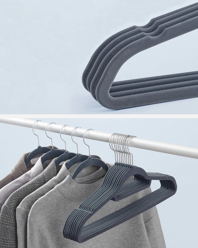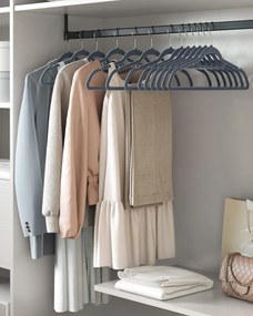 Zestaw 20 sztuk welurowych wieszaków na ubrania to podstawowy element wyposażenia naszych szaf. Wieszaki znakomicie sprawdzą się do spodni, koszul, krawatów, pasków oraz ciężkich garniturów i kurtek zimowych. Welur zapobiega zaciąganiu się ubrań podczas ich zawieszania. Już dziś uporządkuj swoją przestrzeń w szafie, dzięki prezentowanym wieszakom. Wieszaki posiadają specjalne wycięcia do zawieszania bluzek/topów na ramiączkach. Mocny drążek do zawieszania spodni bez problemu wytrzyma ciężar dżinsów oraz innych spodni nie uszkadzając ich przy tym. SPECYFIKACJA Kolor: jasny szary Materiał: ABS, stal Wymiary pojedynczego wieszaka: 45 x 0,6 x 23,5 cm (szerokość x głębokość x wysokość) Wymiary haka: 8 x 5,4 cm (wysokość x szerokość) Obrotowy haczyk 360°: tak Waga pojedynczego wieszaka: 78 g Max. obciążenie na wieszak: 5 kg UWAGI PRODUCENTA: - Nie należy zawieszać mokrych ubrań na wieszakach. - Trzymaj produkt z dala od źródeł ciepła. - Nie używaj wieszaków w pomieszczeniach, w których jest bardzo wysoka temperatura bądź bardzo duża wilgotność. - Nie wieszaj na wieszakach zbyt ciężkich ubrań bądź prania. - Nie należy wrzucać wieszaków do suszarki. Wieszaki zaoszczędzą sporo miejsca w Twojej szafie, wystarczy spojrzeć na jedno ze zdjęć. Produkt jest bardzo wytrzymały, jak widać na załączonym zdjęciu ciężko go złamać. Idealnie wyprofilowany kształt wieszaka przypominający ludzkie ramiona, sprawi, że Twoje ubrania nie odkształcą się. Dodatkowym atutem wieszaków jest to, że ubrania nie zsuwają się z nich oraz nie powodują zagięć na delikatnym materiale. Obrotowy o 360 stopni stalowy chromowany hak zwiększa komfort użytkowania produktu. Dane logistyczne 1 x SKU 2350 waga 1,54 kg brutto - wymiary 42 x 31 x 7 cm.