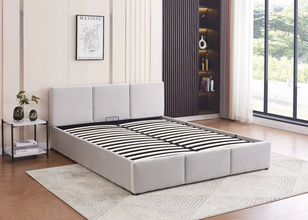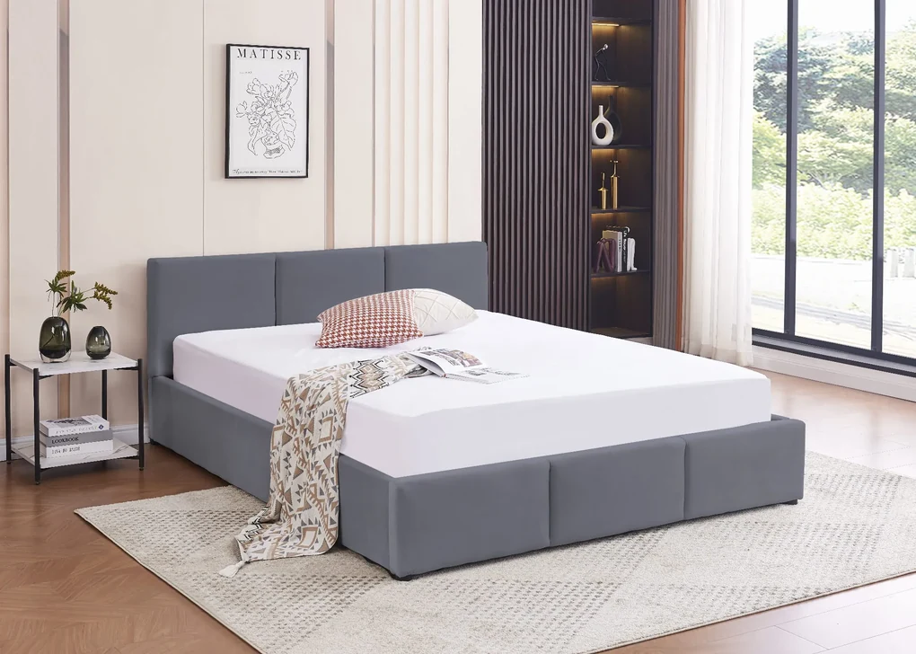 DURO 140x200 Łóżko Tapicerowane szary stalowy, stelaż, pojemnik na pościel