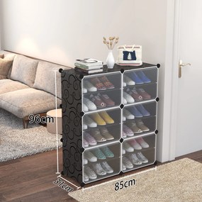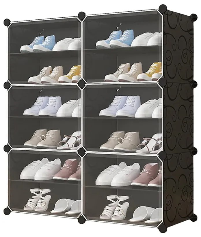 Opis produktu marki OSKAR: Modułowa szafka na buty znajdzie swoje zastosowanie w przedpokoju oraz garderobie. Szafa posiada 12 poziomów, które czynią ją niezwykle funkcjonalną. Dzięki zmiennym modułom, bez problemu połączysz ze sobą kilka szafek, montując je jedna na drugiej lub obok siebie. Całości dopełnia wzorzysty nadruk. Zestaw składa się z: prostokątów z czarnym wzorkiem 6 przezroczystych drzwi narożników drewnianego młotka graficznej instrukcji Szafka modułowa to świetne rozwiązanie na różnego rodzaju obuwie, a przezroczyste drzwiczki sprawią, że będziesz mieć kontrolę nad zawartością regału. Szafka została stworzona z polipropylenowych płyt, które zostały wzmocnione metalowym stelażem oraz z elementów łączących wykonanych z ABS. Ściany szafki łączy się za pomocą dołączonych narożników. Maksymalne obciążenie każdej z komór: 3 kg. Uniwersalna kolorystyka z pewnością przypadnie do gustu niejednej osobie. Wymiary: podane na zdjęciu obok: +- 2 cm. Produkt jest łatwy w utrzymaniu czystości, jest odporny na działanie wody i pleśni. Szafa chroni przechowywane w niej rzeczy przed kurzem i pyłem, a specjalnie ścięte naroża zapewniają lepszą wentylację. Dane logistyczne 1 x SKU 15227 waga 3,3 kg brutto - wymiary 37 x 42 x 7 cm.