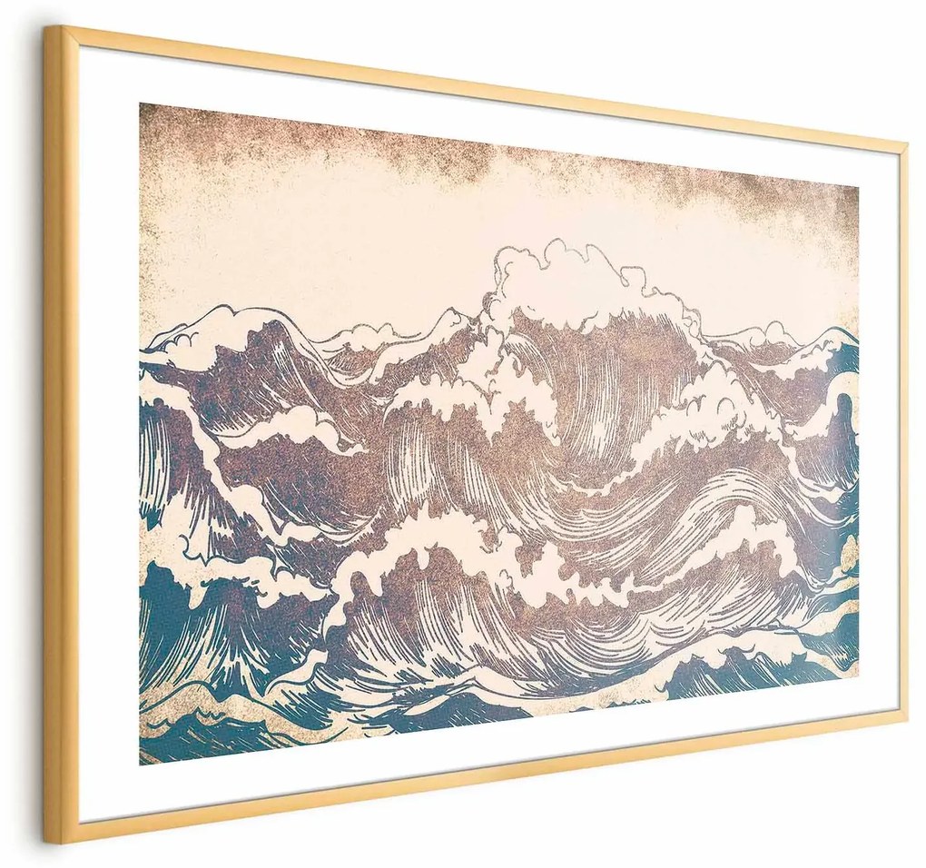 Plakat Olbrzymie fale 30x21 cm z ramą złotą z marginesem Plakat – dekoracja o niezliczonych możliwościach Szukasz szybkiego sposobu na odświeżenie wnętrza bez dużych wydatków? Plakaty to idealne rozwiązanie. Różnorodność wzorów, opraw i rozmiarów pozwala stworzyć wyjątkową aranżację dopasowaną do każdego stylu. Od abstrakcji po krajobrazy, vintage i nowoczesne grafiki – znajdziesz u nas designerskie plakaty na ścianę do salonu, sypialni, biura czy pokoju dziecięcego. Chcesz stworzyć oryginalną galerię? Łącz plakaty według motywu, tematyki lub kolorystyki. Możliwości aranżacyjne są niemal nieograniczone! Plakaty na ścianę w różnych odsłonach Nasza oferta obejmuje plakaty w czarnej ramie z aluminium – idealne do nowoczesnych wnętrz, oraz warianty w złotej oprawie, doskonałe do stylu glamour. Każdy plakat ma zawieszki montażowe, ale można go również zamocować na taśmie montażowej lub samoprzylepnych gwoździach. Plakaty świetnie wyglądają zarówno zawieszone, jak i oparte o ścianę. Preferujesz plakaty bez ramy? Możesz zawiesić je za pomocą klipsów, taśmy ozdobnej, magnesów czy pinezek. Oferujemy warianty z białym marginesem lub pełnym nadrukiem. Efektowne plakaty w jakości Premium Plakaty drukujemy na papierze o gramaturze min. 250 g/m² w technologii Full HD i UV Safe, co zapewnia trwałość kolorów nawet przy długiej ekspozycji na światło. Zarówno plakaty, jak i ramy, wykonane są z bezpiecznych i bezwonnych materiałów, idealnych także do sypialni i pokojów dziecięcych. Każdy produkt przechodzi kontrolę jakości przed wysyłką, aby spełniać najwyższe oczekiwania. Odkryj naszą kolekcję i pozwól ścianom opowiedzieć swoją historię!