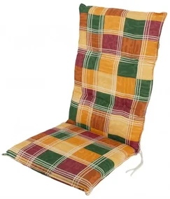 Poduszka na meble ogrodowe z niskim op arciem z serii LIVING w wersji z obszytym brzegiem, przeszyta 2x ściegiem pierścieniowym w oparciu . Zapinana jest na przesuwaną klamrę. Dzięki klamrze można dopasować rozmiar do wielkości i rodzaju krzesła, klamra jest stała i nie wysuwa się. Poduszka siedziska jest mocowana za pomocą dwóch sznurowadeł w zagięciu poduszki. Pokrowca nie można zdjąć. Grubość wyściółki jest optymalna dla wszystkich typów krzeseł. Konstrukcja nadaje się również do bardziej wymagających warunków w kawiarniach, ogrodach i restauracjach .