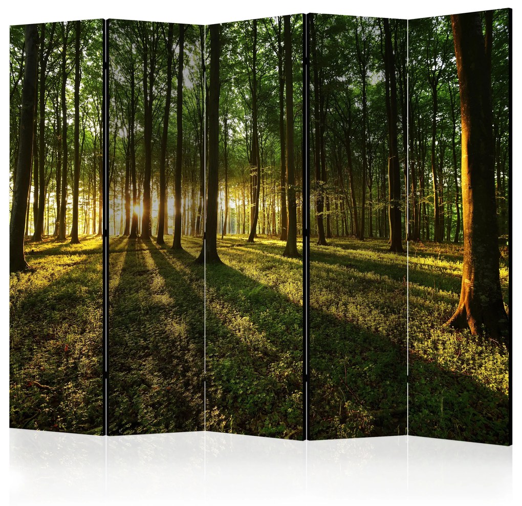 Parawan dwustronny Pejzaże 225x172 cm 5-częściowy zielony Parawan pokojowy – funkcjonalność i design w jednym Chcesz podzielić przestrzeń w estetyczny i praktyczny sposób? Parawan pokojowy to idealne rozwiązanie do salonu, sypialni, gabinetu czy butików. Umożliwia wydzielenie stref w pomieszczeniu, zapewnia prywatność i stanowi stylową dekorację. Parawan świetnie sprawdzi się w małych mieszkaniach, gdzie pozwoli na oddzielenie części do pracy od strefy relaksu. Możesz wykorzystać go jako osłonę dla garderoby, suszarki z praniem czy biurka. Jest też doskonałym wyborem do salonów kosmetycznych i fryzjerskich, dodając im elegancji i zapewniając dyskrecję klientom. Parawany dostępne w naszej ofercie wykonane są z flizelinowego płótna na drewnianym stelażu, co zapewnia trwałość i stabilność. Solidne metalowe zawiasy umożliwiają łatwe składanie i rozkładanie. Oferujemy modele 3- i 5-częściowe, a także warianty jednostronne, dwustronne oraz akustyczne, które dodatkowo tłumią hałas. Nasze parawany dostępne są w trzech wariantach: Dwustronny – wzór znajduje się po obu stronach parawanu. Jednostronny – wzór jest nadrukowany tylko po jednej stronie. Akustyczny – wzór znajduje się po obu stronach, a w środku zastosowano technologię izolującą dźwięk. Dzięki technologii Full HD i ochronie UV parawany zachowują intensywność kolorów przez długi czas. Bezzapachowe i bezpieczne dla dzieci materiały sprawiają, że są idealne do każdego wnętrza. Szeroki wybór wzorów pozwala dopasować parawan do różnych aranżacji – od nowoczesnych po klasyczne. Odkryj naszą kolekcję i znajdź idealny parawan do swojego wnętrza!