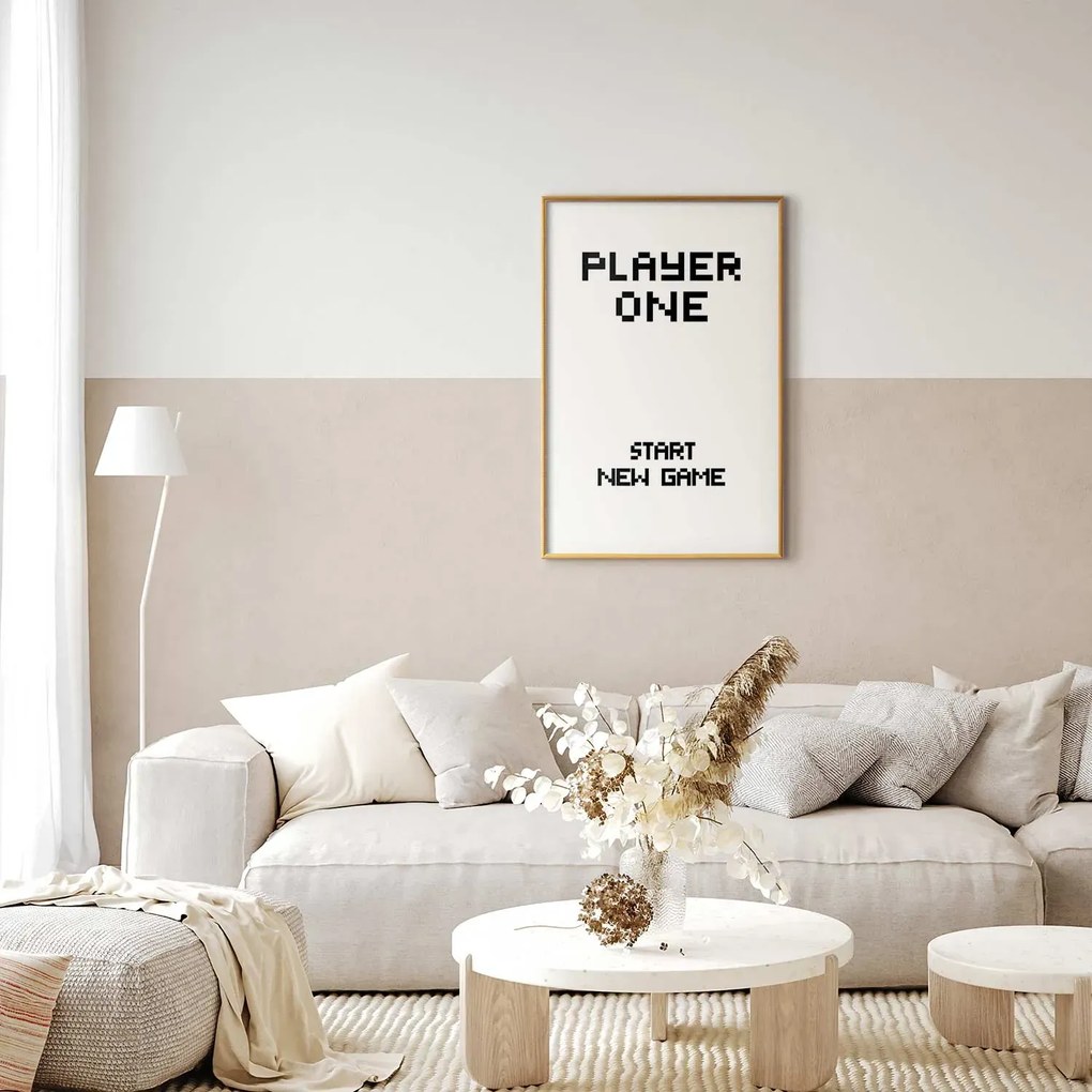 Plakat New game 40x60 cm z ramą złotą z marginesem Plakat – dekoracja o niezliczonych możliwościach Szukasz szybkiego sposobu na odświeżenie wnętrza bez dużych wydatków? Plakaty to idealne rozwiązanie. Różnorodność wzorów, opraw i rozmiarów pozwala stworzyć wyjątkową aranżację dopasowaną do każdego stylu. Od abstrakcji po krajobrazy, vintage i nowoczesne grafiki – znajdziesz u nas designerskie plakaty na ścianę do salonu, sypialni, biura czy pokoju dziecięcego. Chcesz stworzyć oryginalną galerię? Łącz plakaty według motywu, tematyki lub kolorystyki. Możliwości aranżacyjne są niemal nieograniczone! Plakaty na ścianę w różnych odsłonach Nasza oferta obejmuje plakaty w czarnej ramie z aluminium – idealne do nowoczesnych wnętrz, oraz warianty w złotej oprawie, doskonałe do stylu glamour. Każdy plakat ma zawieszki montażowe, ale można go również zamocować na taśmie montażowej lub samoprzylepnych gwoździach. Plakaty świetnie wyglądają zarówno zawieszone, jak i oparte o ścianę. Preferujesz plakaty bez ramy? Możesz zawiesić je za pomocą klipsów, taśmy ozdobnej, magnesów czy pinezek. Oferujemy warianty z białym marginesem lub pełnym nadrukiem. Efektowne plakaty w jakości Premium Plakaty drukujemy na papierze o gramaturze min. 250 g/m² w technologii Full HD i UV Safe, co zapewnia trwałość kolorów nawet przy długiej ekspozycji na światło. Zarówno plakaty, jak i ramy, wykonane są z bezpiecznych i bezwonnych materiałów, idealnych także do sypialni i pokojów dziecięcych. Każdy produkt przechodzi kontrolę jakości przed wysyłką, aby spełniać najwyższe oczekiwania. Odkryj naszą kolekcję i pozwól ścianom opowiedzieć swoją historię!
