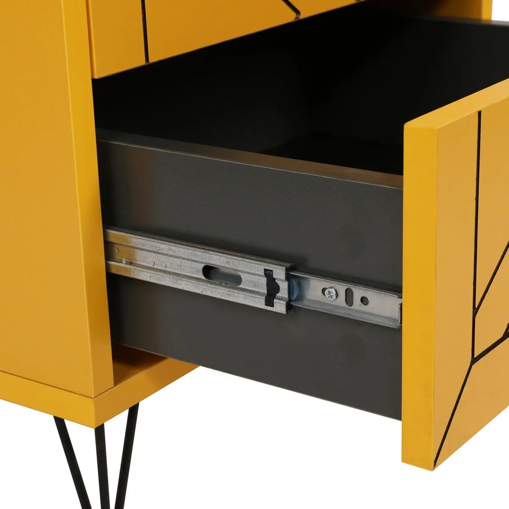 Przedstawiamy wspaniały żółty stolik nocny, zaprojektowany z myślą o wprowadzeniu koloru i stylu do sypialni. Wykonany 100% z płyty wiórowej pokrytej melaminą jest nie tylko atrakcyjny wizualnie, ale także trwały. Podnieś swoje wnętrze odrobiną słońca Piękny żółty kolorstolika natychmiast rozjaśni każdą przestrzeń i doda odrobinę słońca do sypialni. Elegancki i nowoczesny design bez wysiłku ożywi wnętrze i stworzy stylową i przyjazną atmosferę. Połączenie wygody i funkcjonalności Dzięki dwóm przestronnym szufladom stolik nocny oferuje mnóstwo miejsca do przechowywania wszystkich niezbędnych rzeczy. Od książek i czasopism po rzeczy osobiste, wszystko może być uporządkowane i łatwo dostępne. Szuflady mają 46 cm długości i 17 cm wysokości, zapewniając mnóstwo miejsca na rzeczy osobiste. Solidna i trwała konstrukcja Ten stolik nocny został wykonany z materiału o grubości 18 mm i został zaprojektowany tak, aby wytrzymać codzienne użytkowanie i zapewnić długą żywotność. Metalowe nogi nie tylko dodają nowoczesnego charakteru, ale także zapewniają stabilność i wsparcie. Nogi mają wysokość 15 cm, co pozwala na łatwe sprzątanie pod stolikiem nocnym. Szczegóły techniczne: Materiał: 100% płyta wiórowa pokryta melaminą Grubość: 18 mm Metalowe nogi zapewniają stabilność Wymiary: szerokość: 50 cm, wysokość: 55 cm, głębokość: 40 cm Wysokość nóg: 15 cm Dwie pojemne szuflady: Długość szuflady: 46 cm - Wysokość szuflady: 17 cm Kolor: żółty